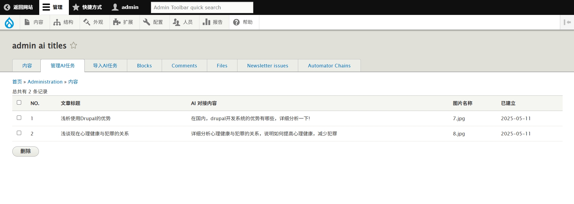 在Drupal模块开发方面,成都长风云基于Drupal开发了基于Deepseek的内容自动生成drupal模块,您可以导入多篇需要生成的内容主题,drupal会根据您的设置,定时调用deepseek获取相应的内容,保存到node中,并自定完成发布,方便地为您生成SEO文章。如下图,Drupal可以每个一段时间(如3小时,